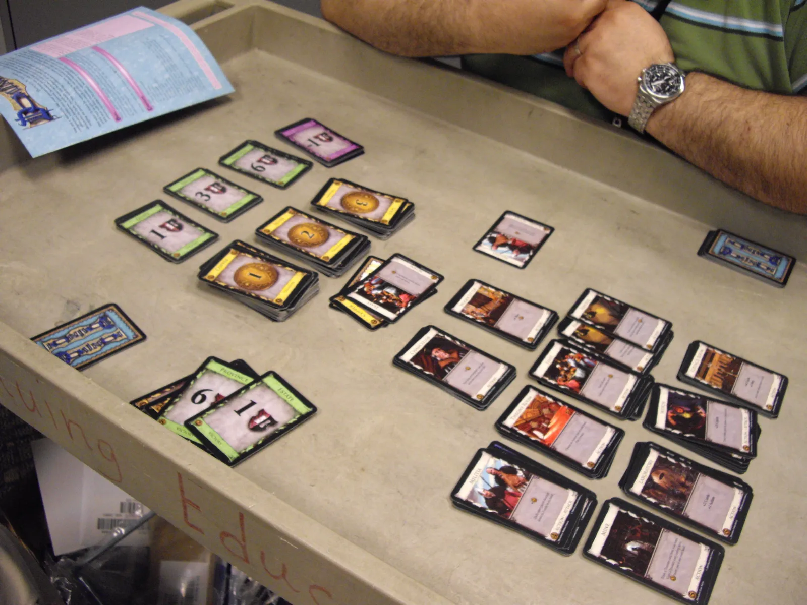 Each game uses 10 different kingdom card piles selected from the many available, ensuring high replayability as different card combinations create new strategic possibilities. Success requires carefully balancing your deck composition between actions, treasure, and victory points. The game’s elegant design and countless possible combinations have inspired numerous deck-builders, but many still consider Dominion the best implementation of the mechanic.